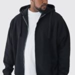 330GSM Plus Regular Fit Zip Through Hoodie in Black
